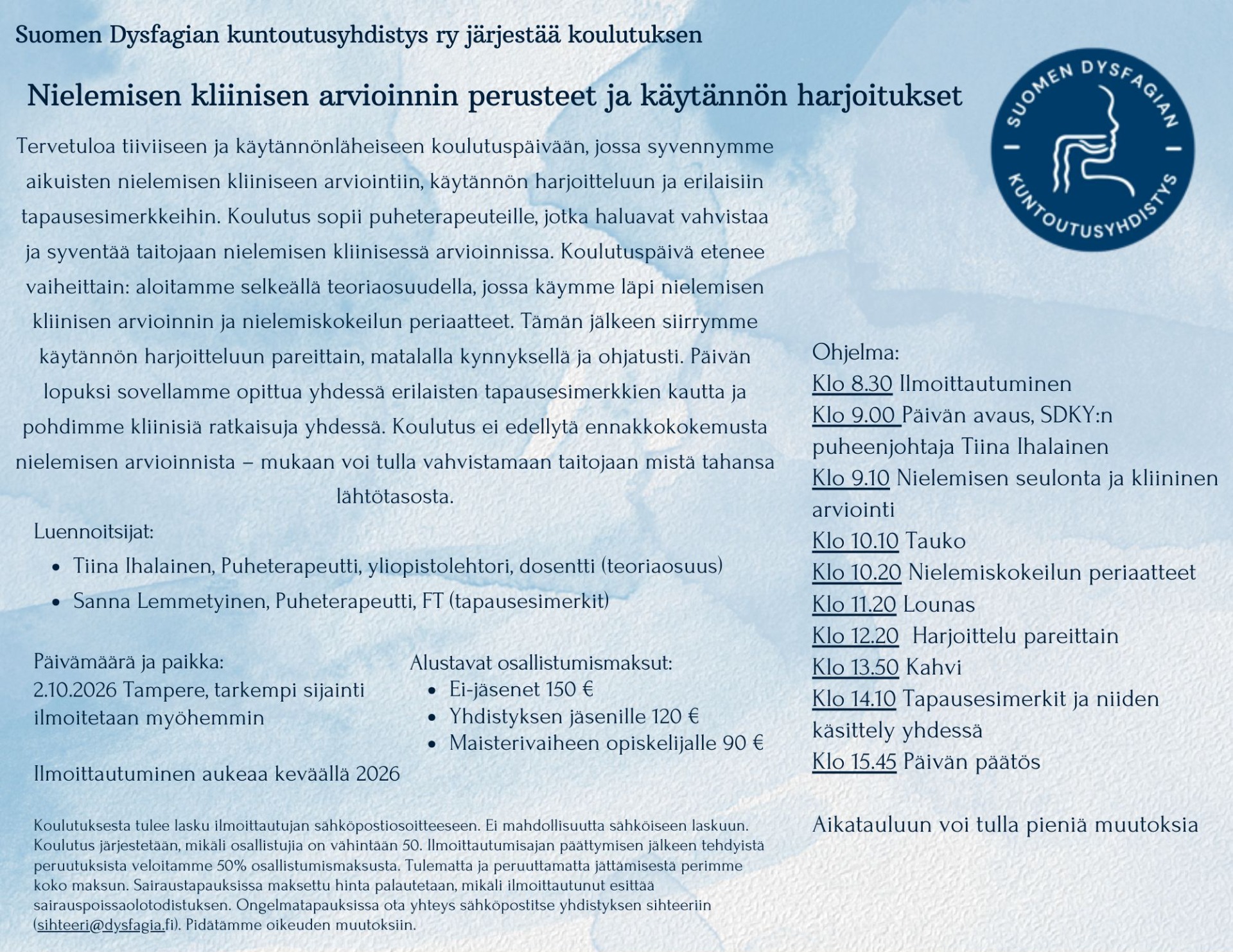 Suomen dysfagian kuntoutusyhdistyksen koulutukset
